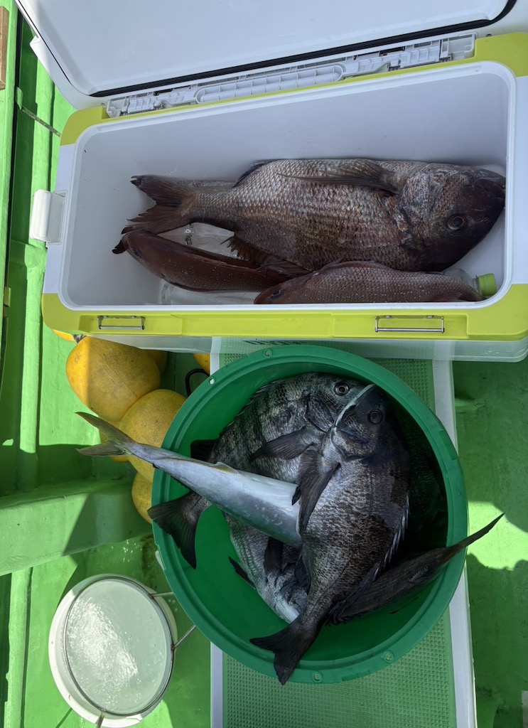 さらに本命の回遊を待つ間にも、引きの強い1.5kg前後のクロダイが多数ヒットし、船上を盛り上げてくれました。