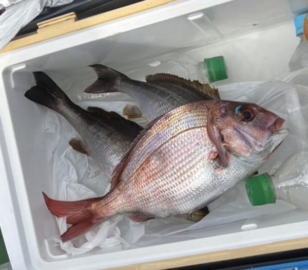剣崎沖では、4.6kgを筆頭に3.5kgと大型真鯛も姿を見せています!