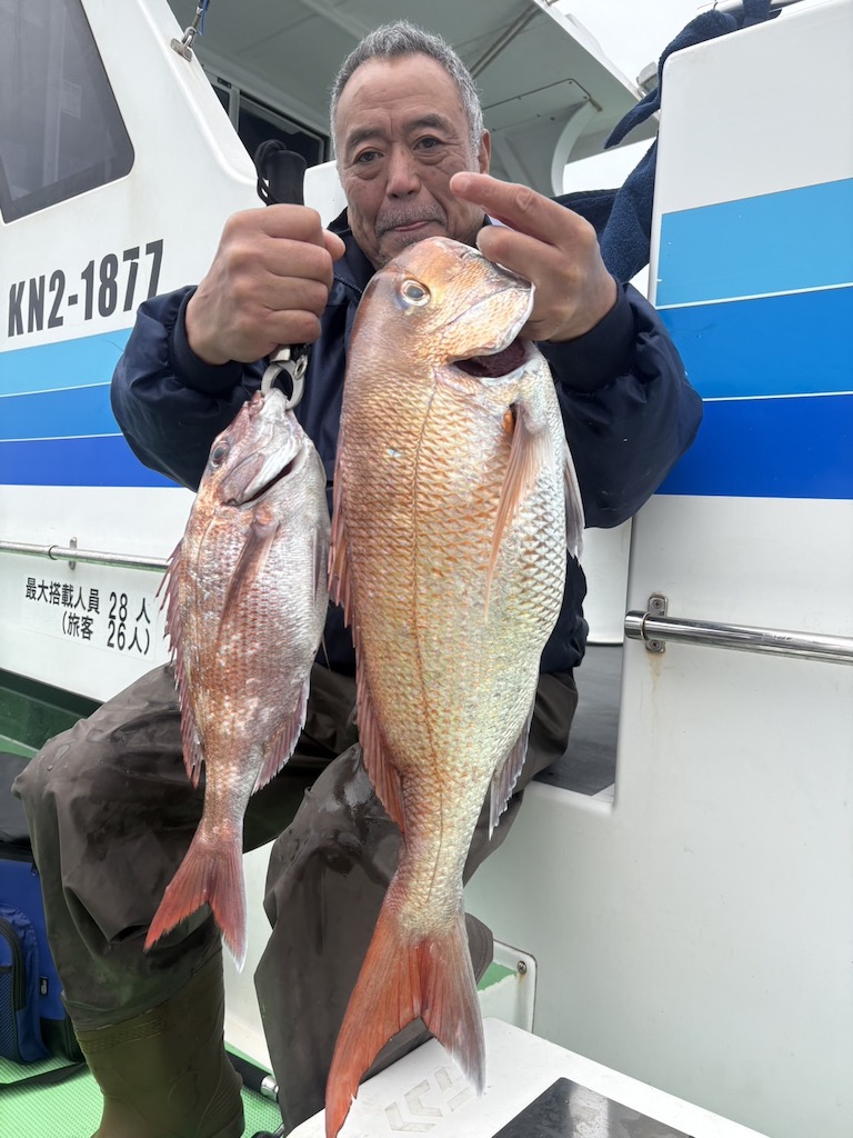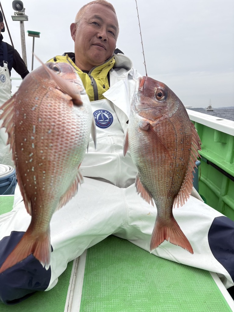 本日も1-3kg近くある大型真鯛が釣れていて、真鯛特有の強烈な引きを楽しめています。
