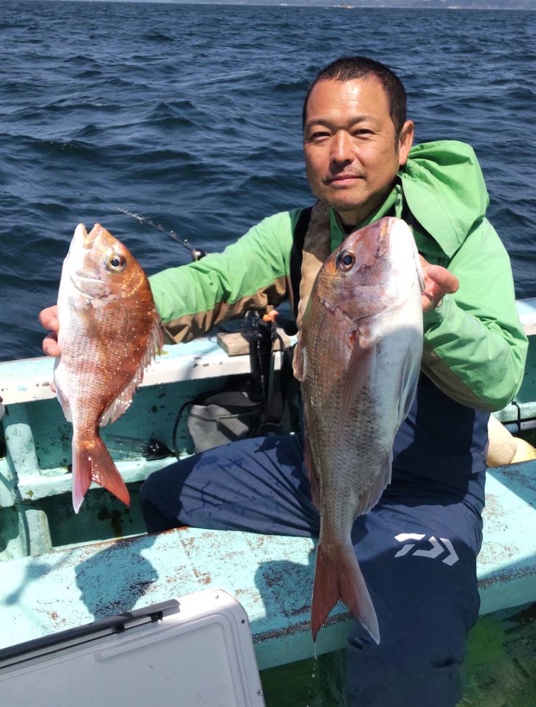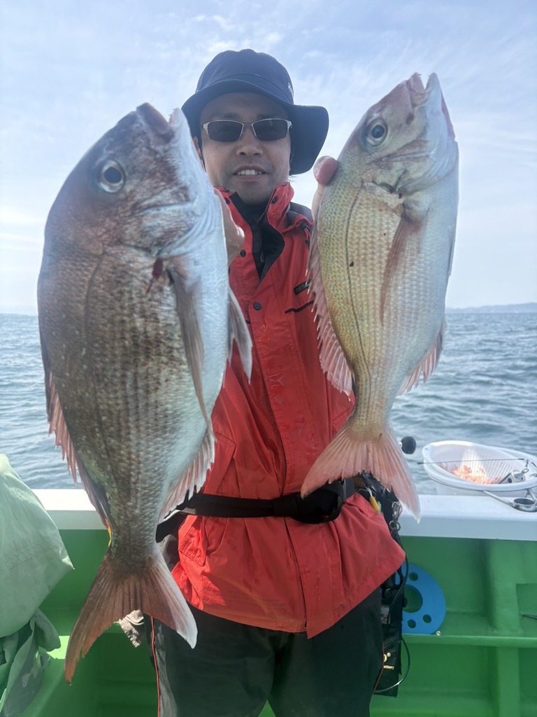 真鯛場全体に大きな群れが回遊しており、あちらこちらで竿が美しい弧を描く、まさに「春の真鯛祭り」な1日となりました。