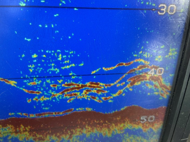 後半は魚群がまばらになることもあり、移動を繰り返して本命待ちつつイサキが顔を見せてくれました。(イサキも真鯛場の広い範囲を回っていますね)