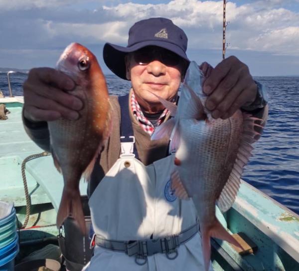 真鯛はトップ2枚、サイズは1kg前後の食べごろサイズ!