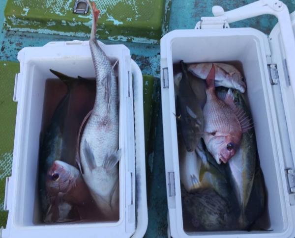 真鯛・ウイリー五目も人気に火がつき始めてます!真鯛はトップ3枚、真鯛も釣れて、カイワリりやイサキなどの人気魚種も混じって掛かり、初心者の方にも多魚種を狙いつつアタリをお楽しみいただけます。