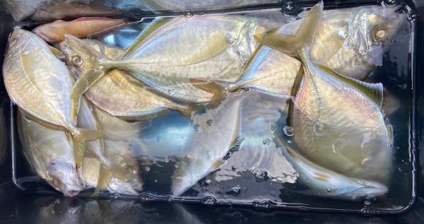 活き餌となるアジは15-25cmサイズが釣れています。お土産サイズとして存在感を見せる30-40cm大型アジもゲット!