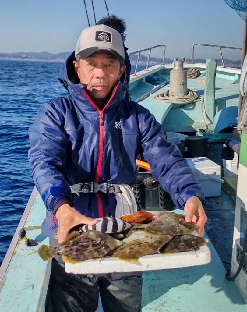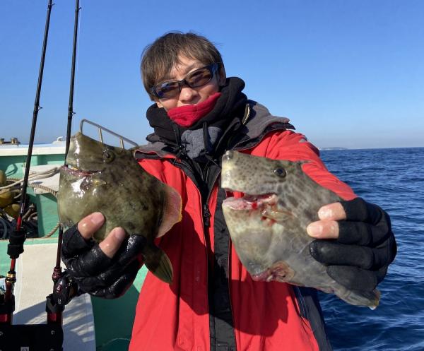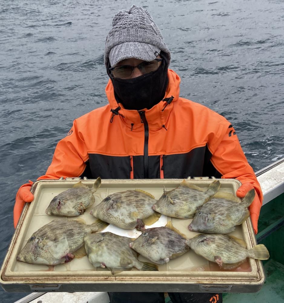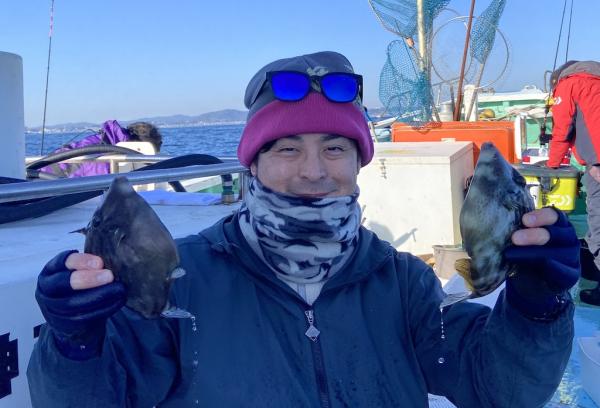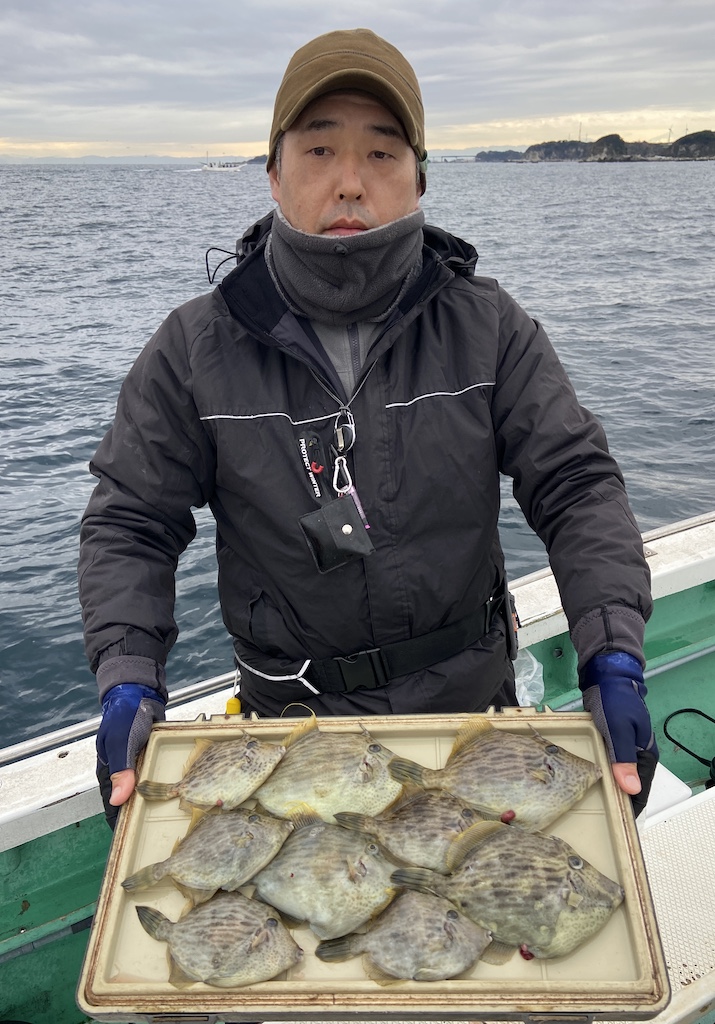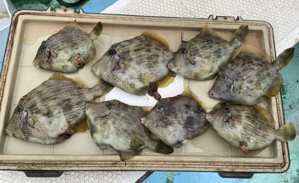 【カワハギ】早朝の剣崎は強風のため毘沙門沖や城ヶ島沖にて15-20cmサイズのカワハギをゲット!1流しに1-4枚ほどのヒットがあってびポツポツ食い。