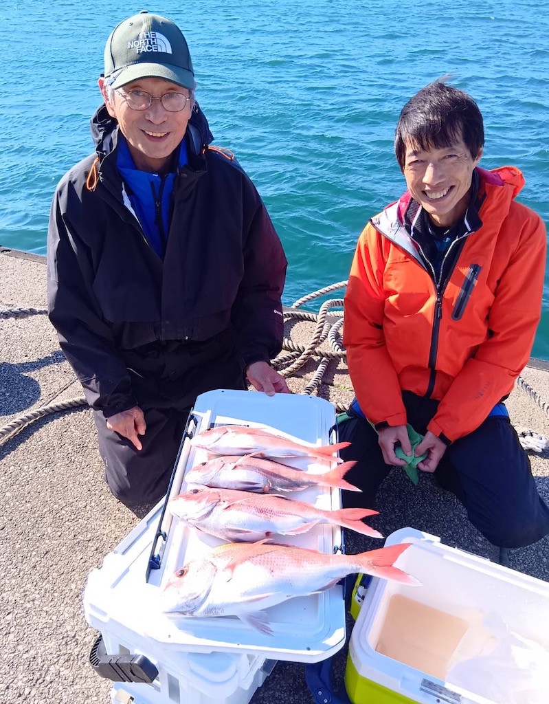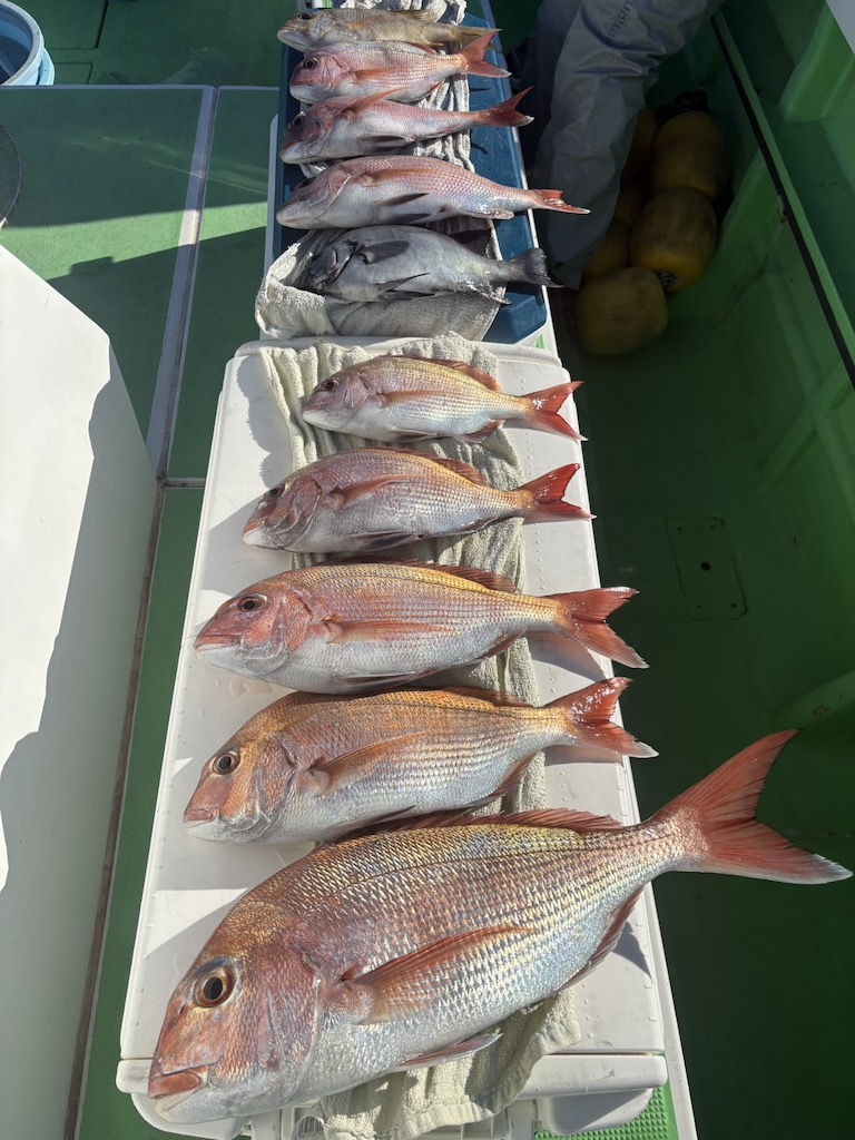 真鯛トップ4枚、最大1kgサイズ!他にも大型アジなども釣れています。