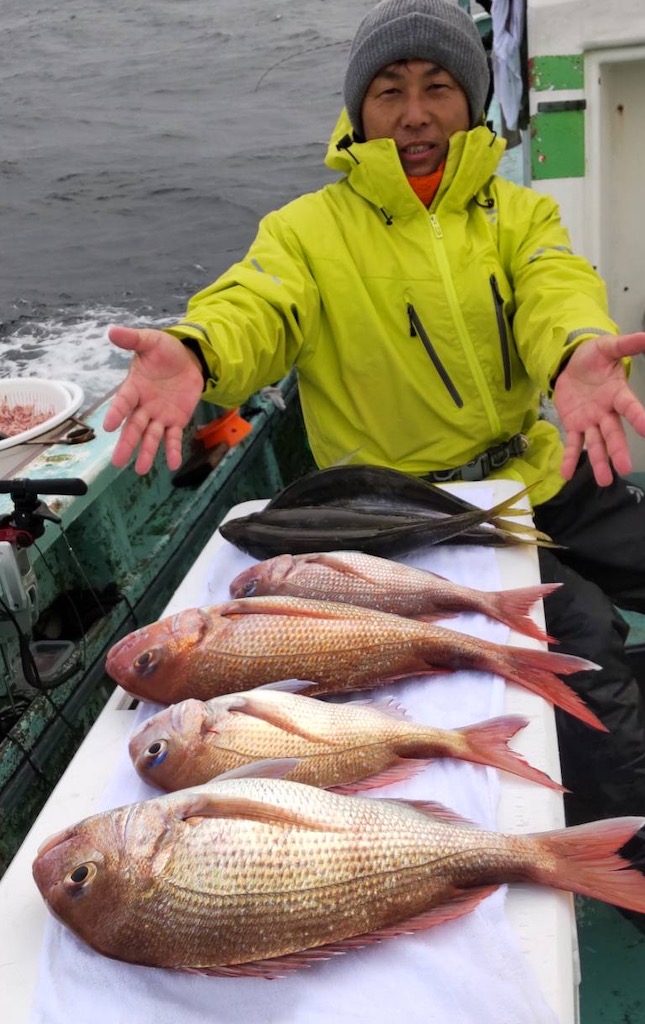複数名様が3枚の真鯛をゲット!今日はほとんどの方が真鯛の顔を見ていて、年末に向けて真鯛の活性が上がってきたのは嬉しいところ!