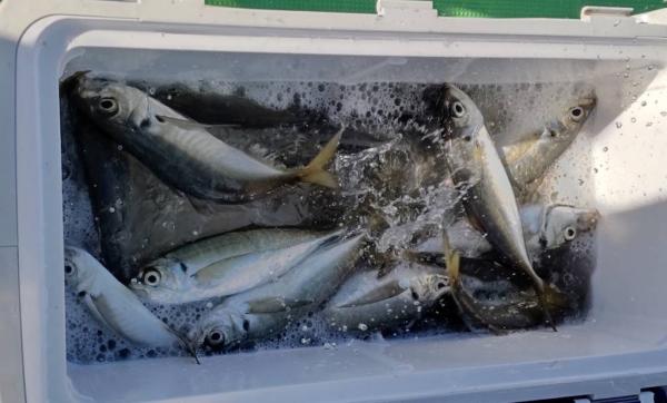 活性は高く、ブリに続いて4-5kg級ワラサも釣れて最高の泳がせ釣りとなっています。活き餌となるアジも好調で好ヒットでした!!!