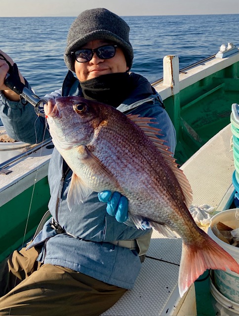 アジは10mほどある魚群、ポツポツと1-2点掛けで釣れます。